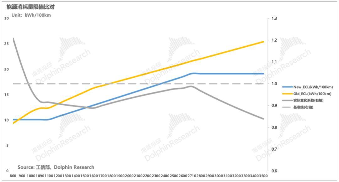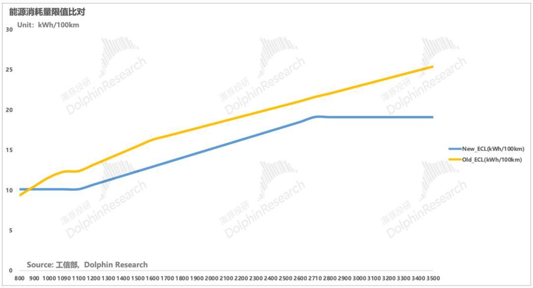 先给大家 看一下新的政策调整,关键调整围绕1)能耗、2)不同车重的不同能耗(含电耗和油耗)。