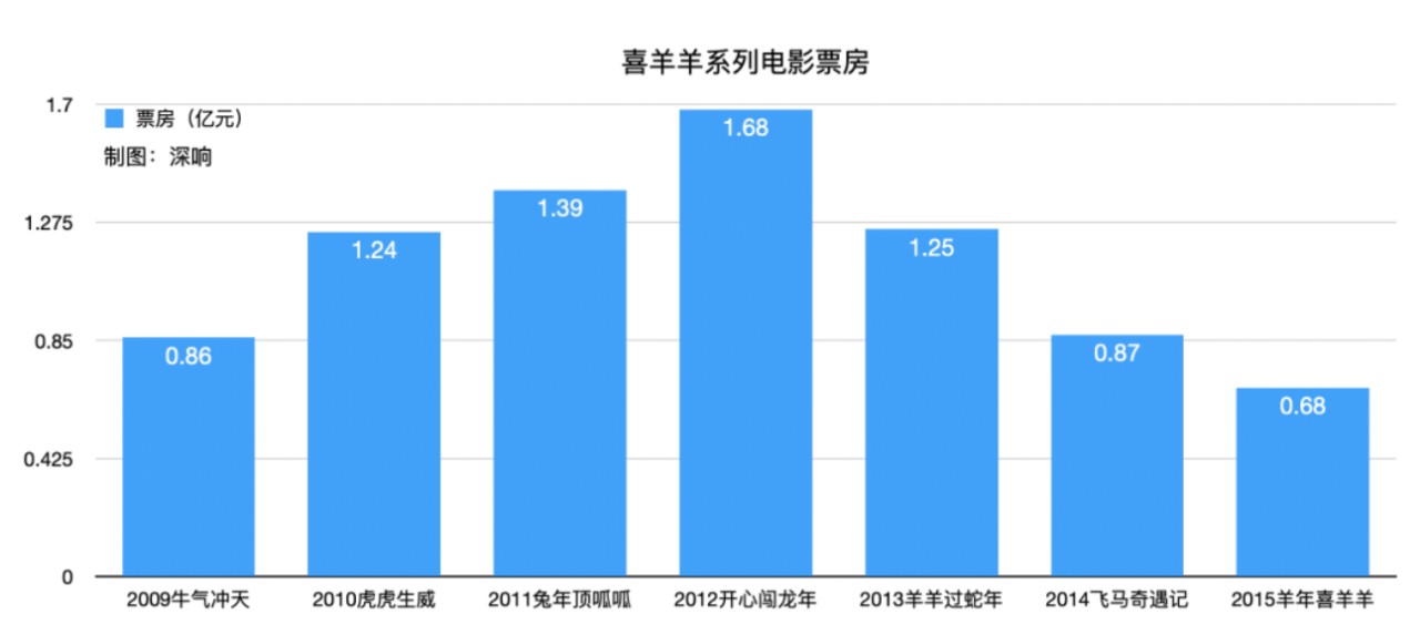2009年寒假,成本仅600万的动画电影《喜羊羊与灰太狼之牛气冲天》卖到了8600万,刷新了国漫电影票房纪录。但值得注意的是,虽然正剧已经更新到了2021年首播的第二十三季,但《喜羊羊》的大电影却停留在了2015年,《喜羊羊与灰太狼之羊年喜羊羊》仅收获6765万票房,随后出品方暂停了该系列。