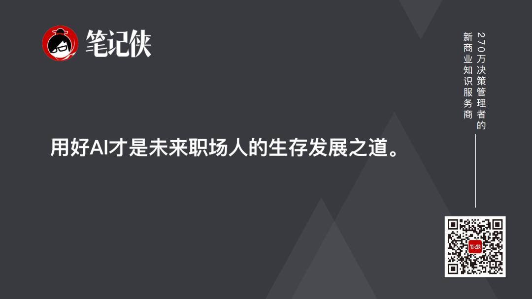 到时候咱们上班的方式都会变:以前自己熬夜查资料,以后AI帮你整理好;以前纠结方案怎么写,以后AI先给你出三个草稿。所以,用好AI才是未来职场人的生存发展之道。