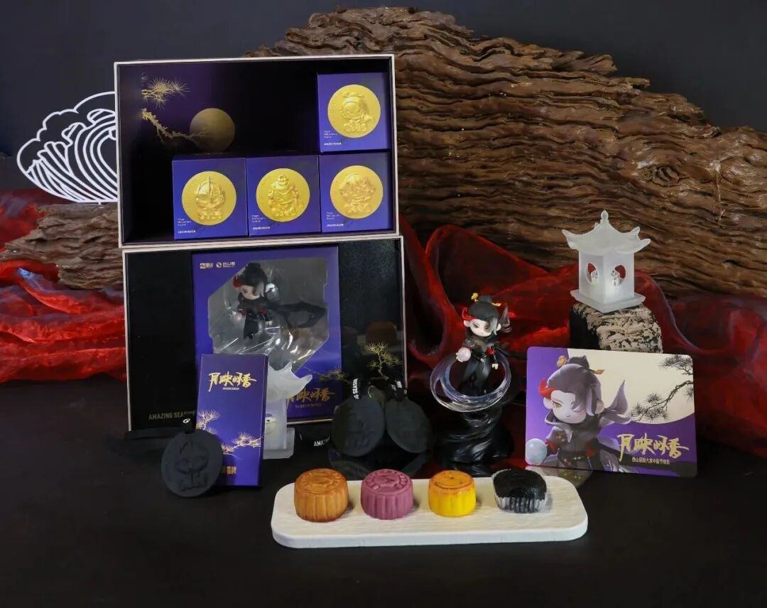 围绕“阅见好故事”的主题,礼盒中的物件也都结合这些IP人物进行定制,比如IP茶包,以及此刻正被评委们瓜分的那块月饼——它是《道诡异仙》主角李火旺的“代言”款,一口下去多少有点克味……