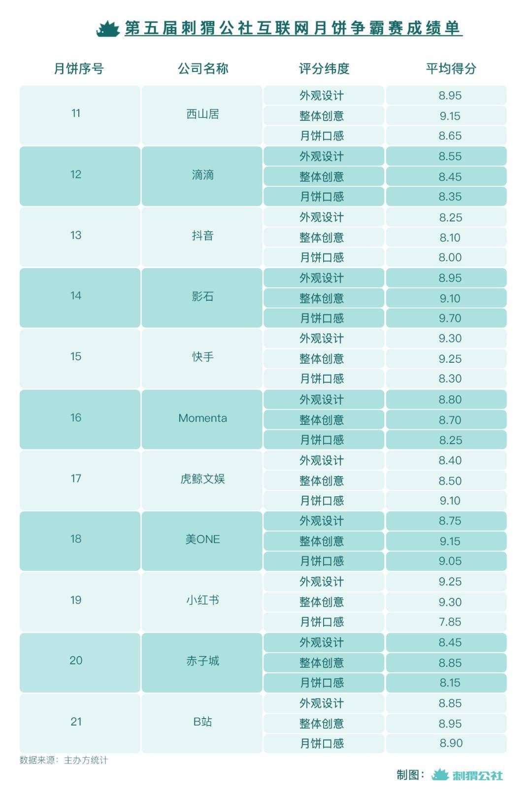 附:第五届刺猬公社互联网月饼争霸赛成绩单——