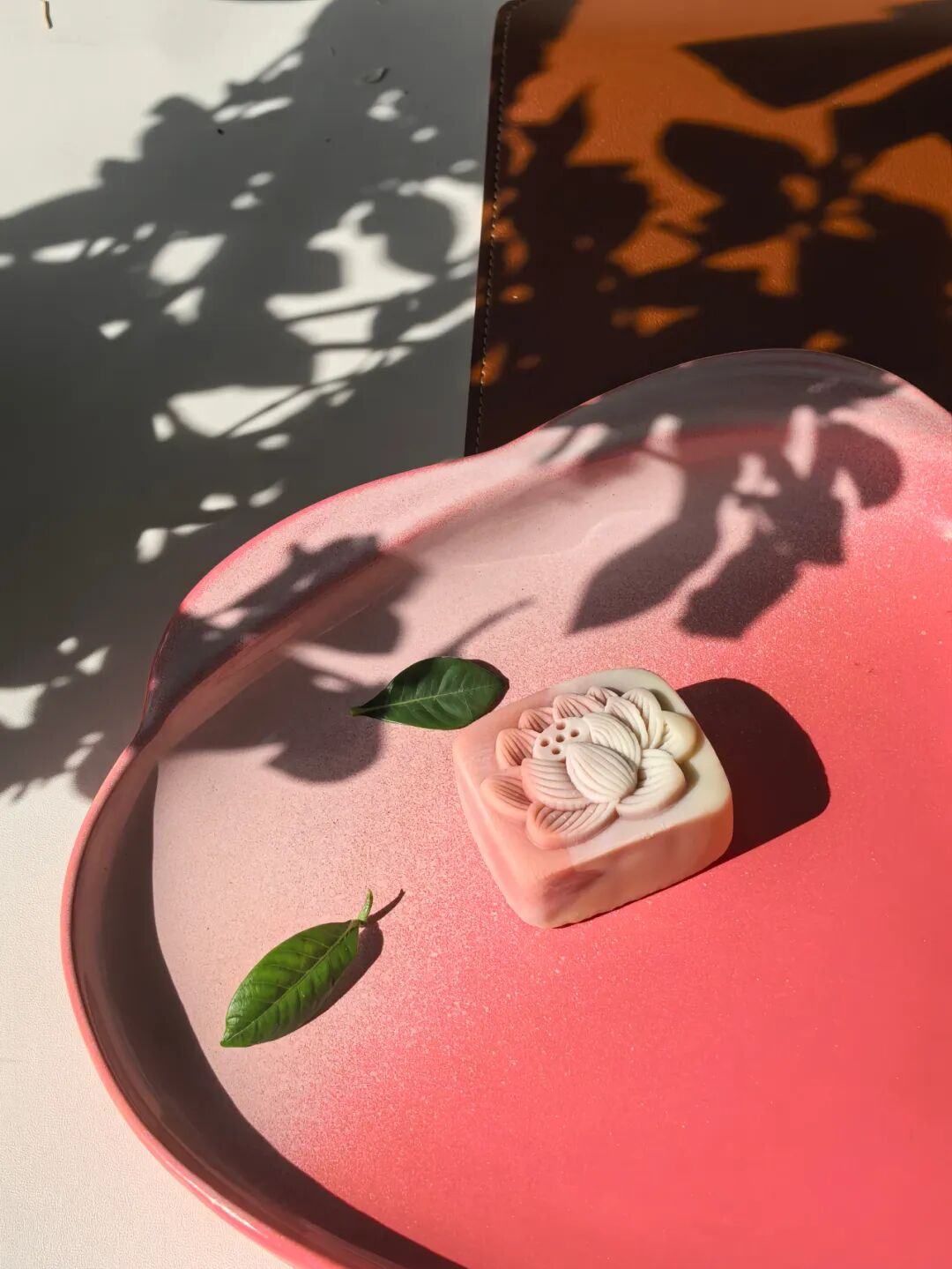 压轴登场的选手,是取自赤子城中秋礼盒的独苗玫瑰豆沙月饼。