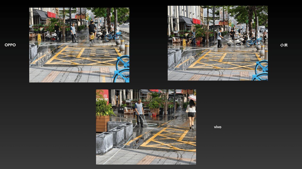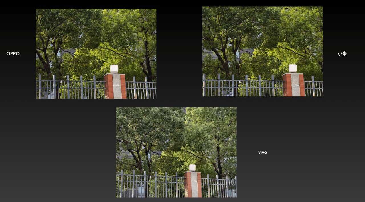在另外几组场景测试中,结果也同样如此。在拍摄同一朵花朵时;小米大幅拉高了花朵的黄色,使花朵在画面中更为突出,即视觉冲击力更强;而OPPO则由于饱和度过高,导致花朵的颜色有些发绿;vivo则主打一个自然,虽然和花朵本身的颜色也有一些区别,但胜在其静态和动态的色差不大。