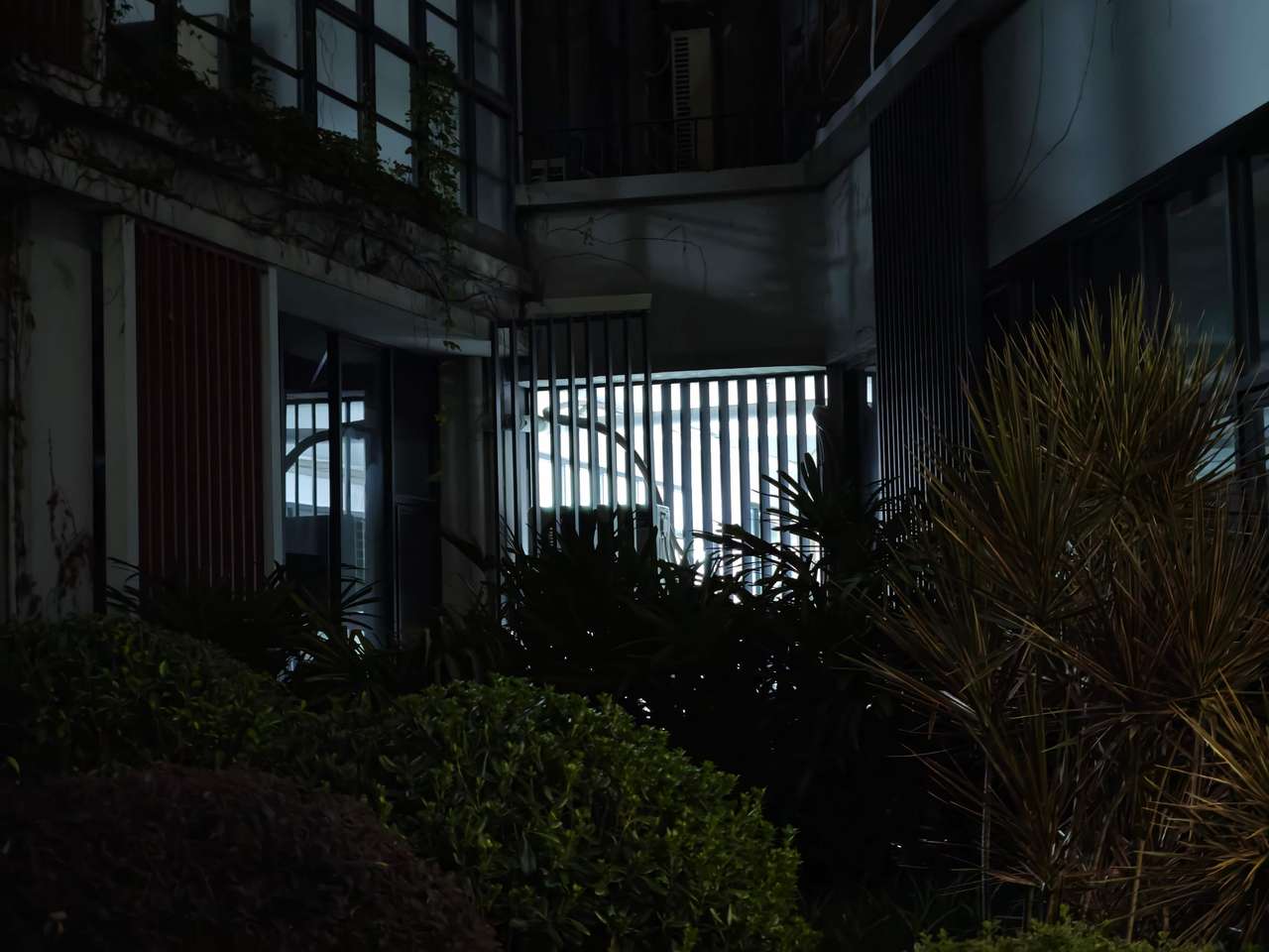 OPPO Find X8 Pro 采用了「多帧合成降噪」 技术,将动态帧的 ISO 压低至 640,画面纯净度在三款机型中最高,暗部的树叶纹理细节保留到位,且整体的画面色温也非常均衡,不过亮度是三者中最低的,路灯后的区域几乎不可见。