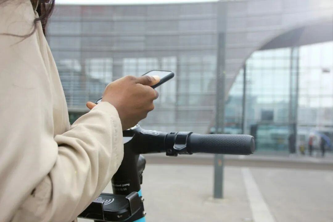 在某写字楼下,Lisa通过九号出行App远程查看车辆位置,避免了因物业挪车引发找车麻烦。